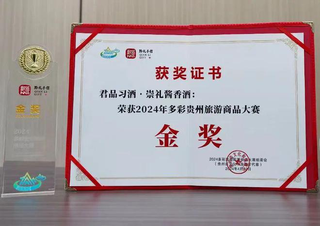 酒说了解到,上个月,君品习酒·崇礼凭借杰出的外观设计和优秀的品质,在3000余件产品中脱颖而出,荣获2024年多彩贵州旅游商品大赛金奖。