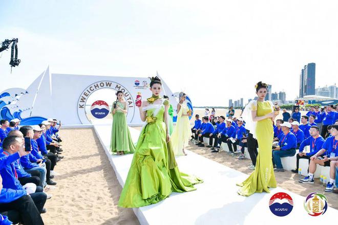 第四,茅台二十四节气文化大赏——共赏美好。茅台酒是节气的馈赠,“共赏美好”篇章是本次嘉年华最大的亮点。在蓝天碧海之间,二十四位身着二十四节气定制华服的模特在沙滩上缓缓走来,轻纱飘逸,场面华美。在二十四节气流转中,茅台家族主体产品一一展示,醇香四溢。