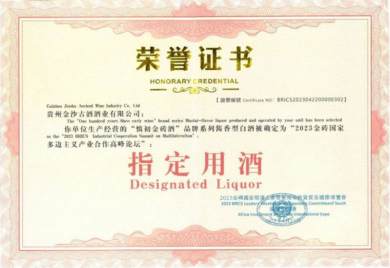 2023年,金沙古酒自主研发数字化终端零售平台“慎初小店”正式上线,平台倾力打造的明星大单品“慎初·金砖”作为”2023金砖国家多边主义产业合作高峰论坛指定用酒”亮相论坛晚宴,让世界见证了柔派酱香的独特魅力。