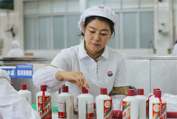 工人在茅台包装车间生产线上工作。卢志佳 摄