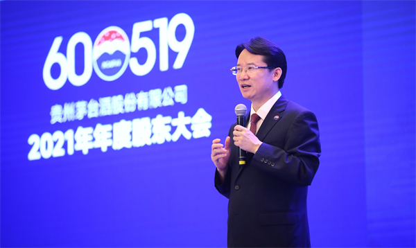 茅台集团党委书记、董事长丁雄军在贵州茅台2021年年度股东大会上致辞。卢志佳 摄