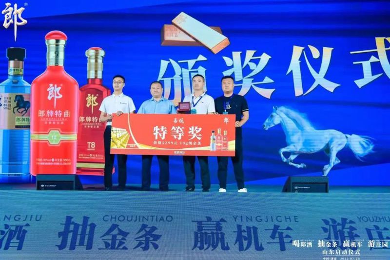 “郎酒立志成为被白酒消费者热爱的品牌,此次2022‘喝郎酒·抽金条、赢机车、游庄园’山东启动仪式顺利举办,正式拉开了郎酒回馈山东消费者的华丽序幕。与此同时,郎酒还将牵手齐鲁频道点亮济南地标,联合山东省内主流媒体充分营造郎酒市场氛围,让郎酒品牌在齐鲁大地随处可见,把郎酒做进山东消费者的心里、口碑里。”
