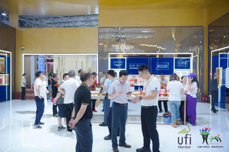 △展会现场,郎酒展厅吸引众多观展嘉宾及客商前来参观、品鉴、洽谈
