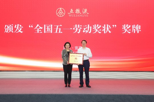 劳动开创未来,奋斗成就梦想。5月6日,中国财贸轻纺烟草工会在宜宾举行授牌仪式,向五粮液集团颁发“全国五一劳动奖状”奖牌。