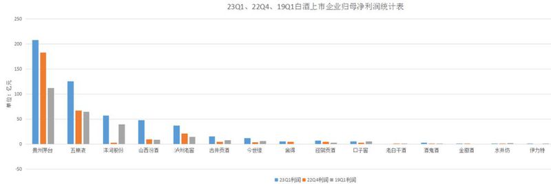 对比2023年第一季度财报与2019年第一季度财报可以看到,白酒行业向头部企业集中的趋势未变。