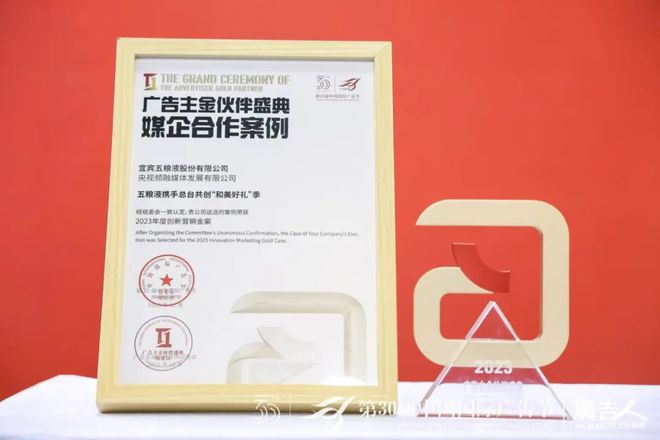 上月,在第30届中国国际广告节上,五粮液携手央视总台共创“和美好礼”季脱颖而出,荣获广告主金伙伴盛典媒企合作案例“2023年度创新营销金案” 。