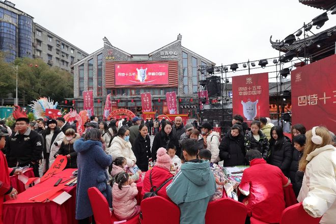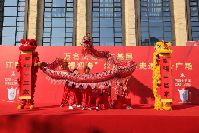 1月20日,四特酒在万寿宫历史文化街区举办了盛大的新春晚会,一场欢腾威武的舞狮表演拉开活动的大幕,年长者与学生代表手持毛笔书写万福图,祝愿新的一年福气满满;书法家在现场挥毫泼墨,将百余幅春联与福字送给市民,传递吉祥如意与美好心愿;现场还设有非遗文化体验区,老艺人们精湛的技艺,将中国传统文化与民俗文化的魅力展现得淋漓尽致。