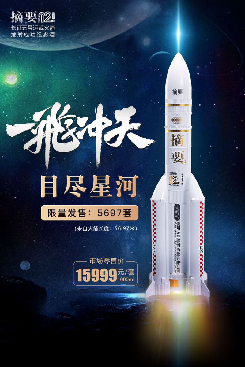 在此背景下,承载着非凡战略意义的摘要12•长征五号纪念酒更是以15999元/套的零售价格突显高端收藏属性,彰显特殊题材的文化价值。
