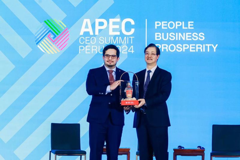 在推介会上,蒋文格与2024年APEC工商领导人峰会执行主任Luciano Paredes联合发布2024年APEC&五粮液联名款纪念礼盒,寄予五粮液与APEC深化合作、共融发展的美好愿景。该礼盒以“志合者 不以山海为远”为主题,跨越秘鲁与中国之间的山海距离,巧妙融合大熊猫、三星堆、天坛、牡丹等中国元素,以及秘鲁最具代表性的秘鲁魔力花、太阳神殿博物馆、南美骆马等元素,以令人记忆深刻的专属视觉符号,展现文化交流互鉴、共促发展的生机活力,凸显“和合共生、美美与共”的和美文化价值追求。