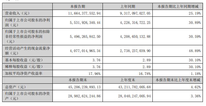 8月28日晚间,泸州老窖股份有限公司发布2022年半年报。报告显示,公司2022年半年度实现营业收入为116.64亿元,同比增长25.19%;实现归属于上市公司股东的净利润55.32亿元,同比增长30.89%。