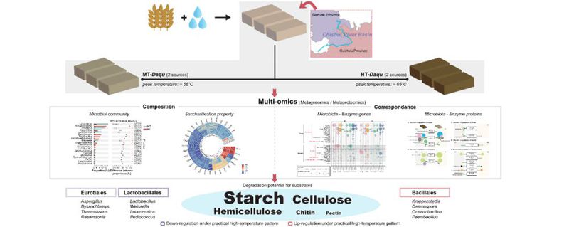 该研究结合多组学技术,拓展了对大曲糖化酶基因分布、谱系特征、来源菌种的认识,系统揭示中温和高温大曲糖化功能差异及其菌群参与机制,为制曲工艺的解构和大曲改良提供了科学依据。