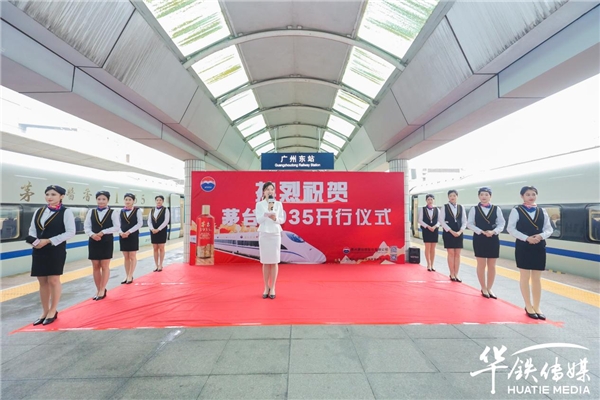 首发仪式现场,茅台领导与华铁领导共同为冠名列车揭开帷幕,并进行剪彩仪式,本次“茅台酱香1935”冠名活动取得圆满成功!据悉,茅台 1935,循历史而来、取匠心而作、向美好而生,不仅有着“茅台酱香、股份出品”的品牌保障,又兼具“茅台酱香、万家共享”的高端品质。贵州茅台酱香酒营销有限公司立足酱香酒产业多元化全国市场的品牌战略布局,开启茅台1935最美营销矩阵,借力中国高铁“中国速度”东风,助力茅台1935勇往直前,向美跃进!共谱共绘酱香系列酒新蓝图!