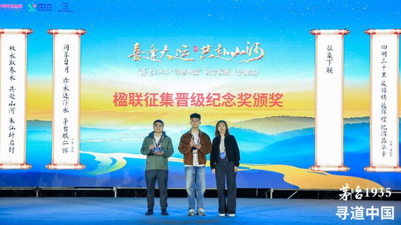 “寻道中国”第二季,茅台1935除了举办开阔眼界、丰富知识的科学探索活动,还举行了楹联征集活动。作为中国传统文化的独特形式,楹联可以以更风雅传统的方式表达“寻道中国”的艺术之美,既能表达广大酱粉对“寻道中国”活动美的感悟和美好祝愿,又可以在更广阔的空间吸引更多的酱粉参与到活动中来。宁波站楹联征集共计收到作品三百余幅,评选出十幅佳作,由现场嘉宾投票选出晋级作品。