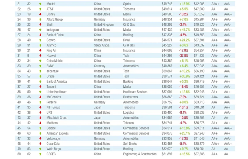 1月18日,2023年Brand Finance与凤凰网财经独家合作发布全球品牌价值500强榜单。茅台以497亿美元的品牌价值位列全球第21位,上榜的中国品牌第7位,获AAA+评级。茅台排名较去年上升11位,品牌价值提升15.9%。