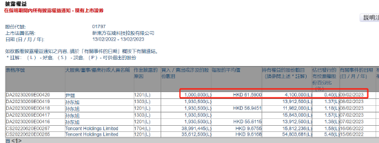 同期,新东方在线CFO尹强也进行了减持,尹强此次减持100万股,减持均价为61.59港元,套现6159万港元。此次减持后,尹强持股从0.5%降至0.4%。