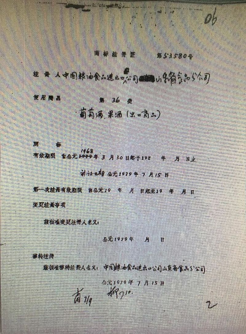 最后,1979 年中粮总公司在茅台酒“葵花”商标停用之后,将“葵花”商标转让给中国粮油食品进出口公司山东省食品分公司。经查国家工商行政管理局档案记载,“葵花”商标注册证,第53580号,移转注册时间1979年7月15日(6)。现在该公司仍持有商标专用权。另外“葵花”商标在国外未申请商标注册,这是因特定历史情况所造成的。