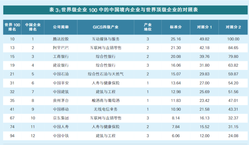 世界级企业100涵盖54个GICS四级产业(财富500强涵盖37个GICS四级产业),其中产业冠军54家,产业亚军28家,产业季军12家,产业殿军6家。