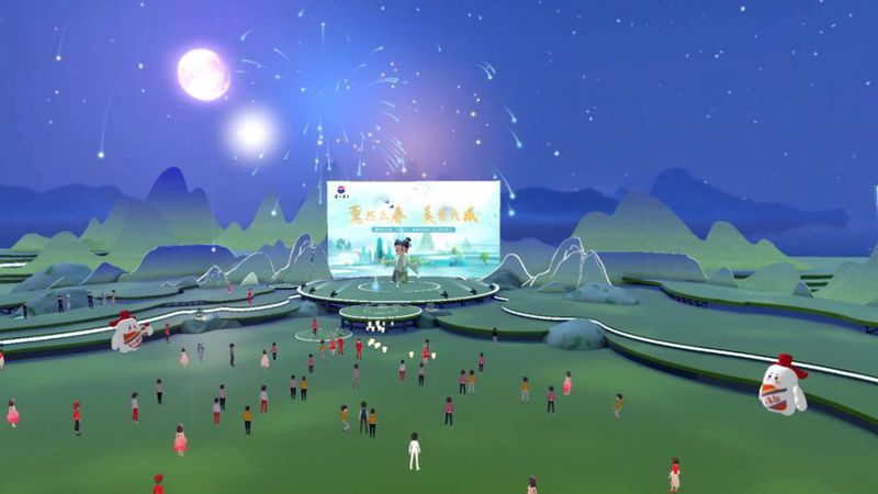 晚上七点,现实世界中的茅台中国酒文化城被装点一新,充满了盎然生机。在巽风数字世界里的巽境家园二十四节气文化公园中,同样精心搭建了舞台。线上线下同步进行的发布会,让人们体会到数实融合,虚实一体的超现实体验。