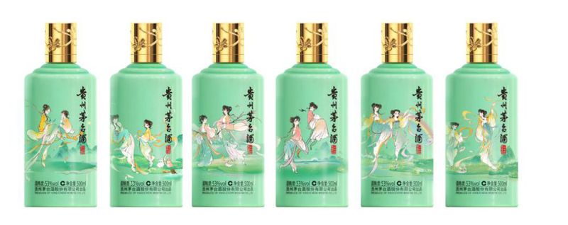贵州茅台酒二十四节气系列文化产品的设计,深度诠释了中华传统节气文化的内涵。春系列产品包括立春、雨水、惊蛰、春分、清明、谷雨,外包装统一使用“莹润绿”为主色调,表现卯木之属性,如同春雨浸润的绿叶,透露着无限生机。瓶身采用经典茅型瓶,瓶身上两位春神(芒)与不同时节的场景融合,以国风人物山水画为设计主体,清新典雅的绿色为背景,中国传统文化的气息扑面而来。
