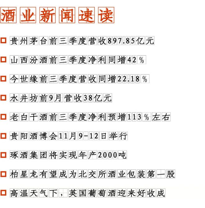 10月12日,水井坊发布1-9月份业绩公告,公告显示,初步核算,1-9月公司预计实现营业收入38亿元左右,同比增长10%左右;预计实现归属于上市公司股东的净利润11亿元左右,同比增长5%左右。