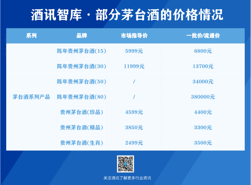 在终端市场,茅台的茅台酒系列包括飞天茅台、陈年贵州茅台酒(15年、30年、50年、80年)、珍品茅台酒、精品茅台酒、茅台生肖酒、飞天茅台等产品都有不错溢价空间,在炒酒圈、收藏界地位斐然,是白酒市场热门的“投资标的”。