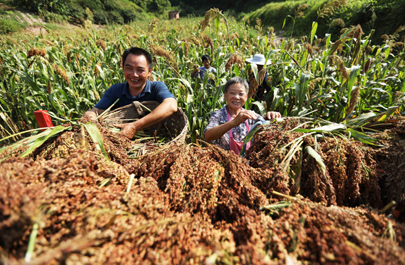 2022年7月,贵州遵义的酿酒高粱喜获丰收。王长育摄
