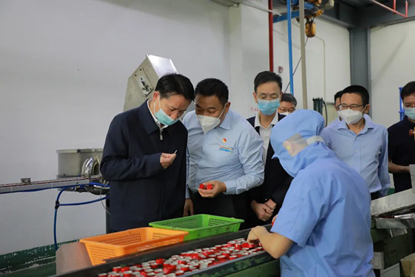 2022年11月,丁雄军在龙狮瓶盖公司查看瓶盖生产线。