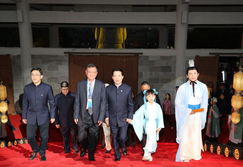 “孔子三千门生”诵读儒家金句,经典演绎儒家文化情景;子张、子夏、子游带领嘉宾入山门,拜会孔子;在浓厚的传统文化氛围里,领导嘉宾行至大成殿平台,感恩大典在《二十四节气·清明》创意舞蹈表演中正式开始。