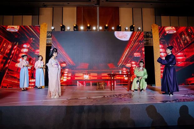 活动在一场别开生面的汉礼迎宾中徐徐拉开帷幕,带宾客穿越到2158年前的一场汉代宫廷夜宴中,通过沉浸式演绎为到场来宾讲述当年唐蒙为汉武帝献枸酱酒,武帝称赞“甘美之”的故事场景。