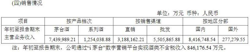其中,系列酒销售收入、直销收入以及i茅台销售收入,三大数据的表现尤为亮眼: