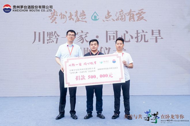 在此次四川举办的茅茅周岁家庭见面会活动上,面对近期启动三级抗旱应急响应的四川旱情,茅台酱香系列酒主动发起了“川黔一家·同心抗旱”捐赠仪式,贵州省慈善联合总会、“贵州大曲·点滴有爱”公益基金向四川省慈善联合总会捐赠抗旱资金50万;贵州省青少年发展基金会、“茅台王子·明亮少年”公益基金向四川省青少年发展基金会捐赠抗旱资金50万,支援四川,共同抗旱。