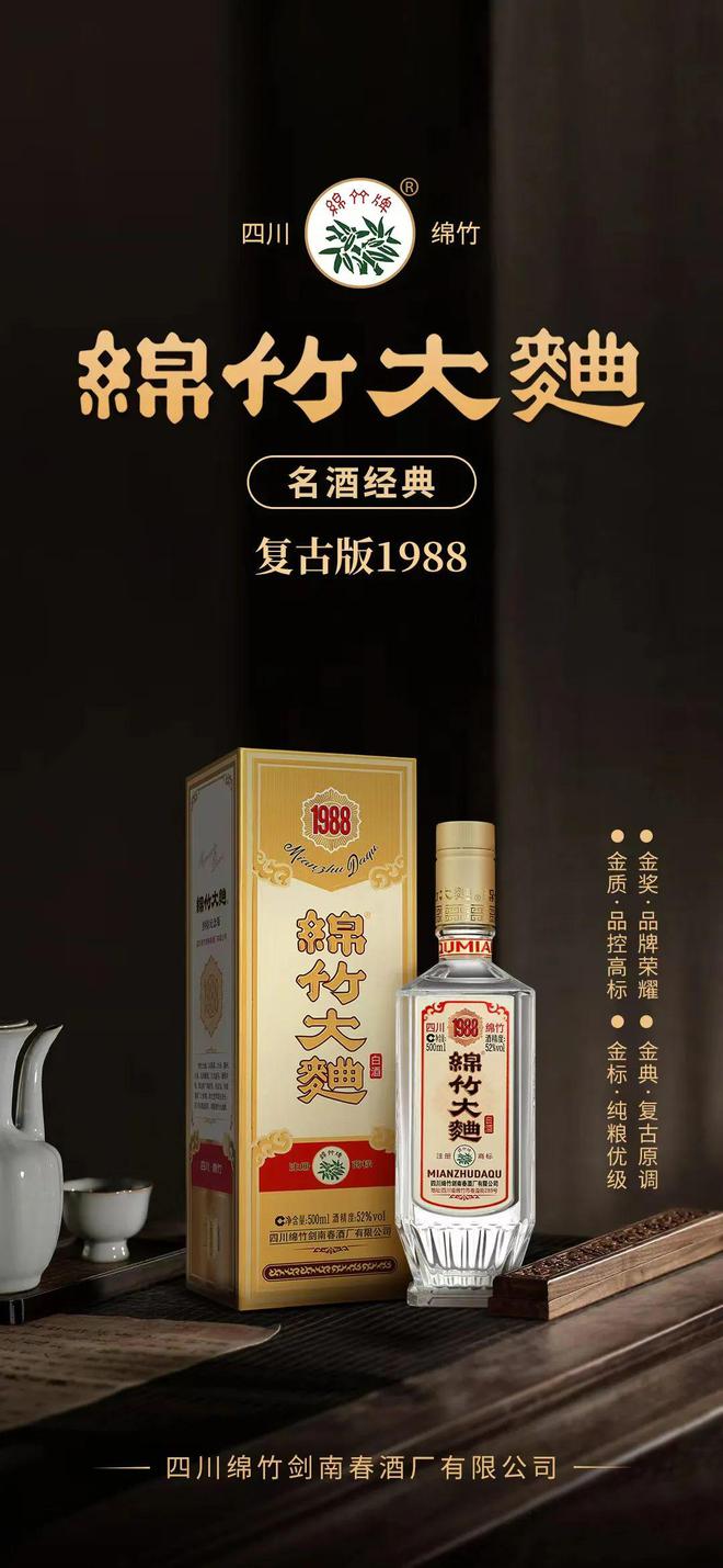资料显示,80年代中后期是剑南春酒厂飞速发展的黄金时期,1988年,剑南春酒厂总结出“一长二高三适当”的生产工艺,突破了浓香型白酒优质品率长期低下的局面。而绵竹大曲复古版仍沿用上述工艺,在酒体采用优级纯粮基酒+陈年调味酒,由剑南春酒厂酒体中心专家团队精心勾调设计。