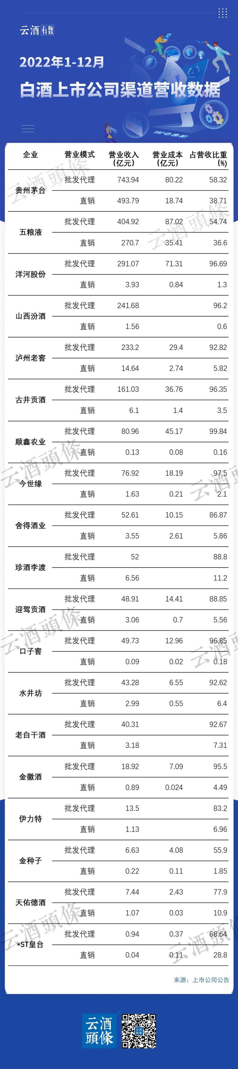 2022年白酒行业竞争更加激烈,各名酒企业都在“产品、品牌、渠道、营销模式”等方面不断创新与优化,“深入推进渠道改革”已经成为各家年报中的高频词汇。通过梳理各家年报内容,可以直观的感受到酒企渠道变革已是大势所趋,“提直降代”已成为酒企增厚利润、推动业绩增长的重要驱动力。![]()