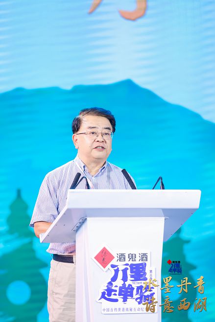 ▲著名文化学者、南京师范大学教授、江宁织造博物馆馆长郦波到会。他从文化角度,深入浅出地讲解了万里走单骑·西湖的文化内涵。