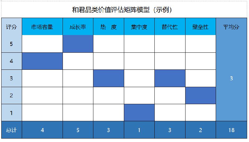 为更直观展示,可以采取如下方法:和君品类价值评估金巢模型,并对各评估纬度进行详解。