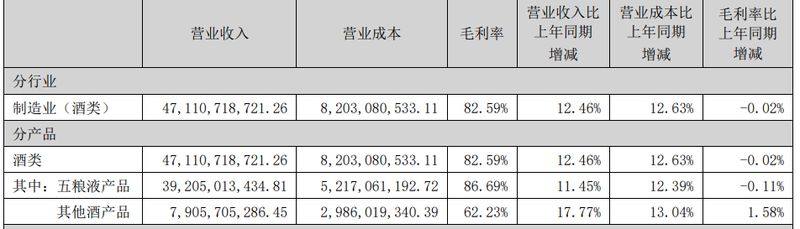 产品方面,五粮液产品实现营收392.05亿元,同比增加11.45%;其他酒产品实现营收79.06亿元,同比增加17.77%。
