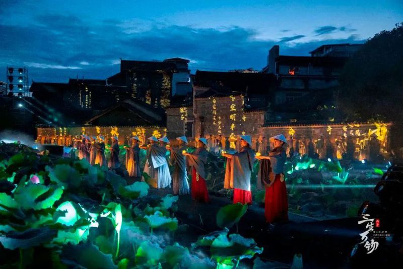 此次在湘西州首届旅游发展大会上震撼亮相的《三生万物》第二境“内参·沉浸式湘西幻境”,延续了六月初长沙举办的三生万物·内参沉浸式诗酒幻境对《道德经》“一生二,二生三,三生万物”的哲学理念的阐发,在全新湘西幻境语境之下,构建出“天地人”的三种独特意境。