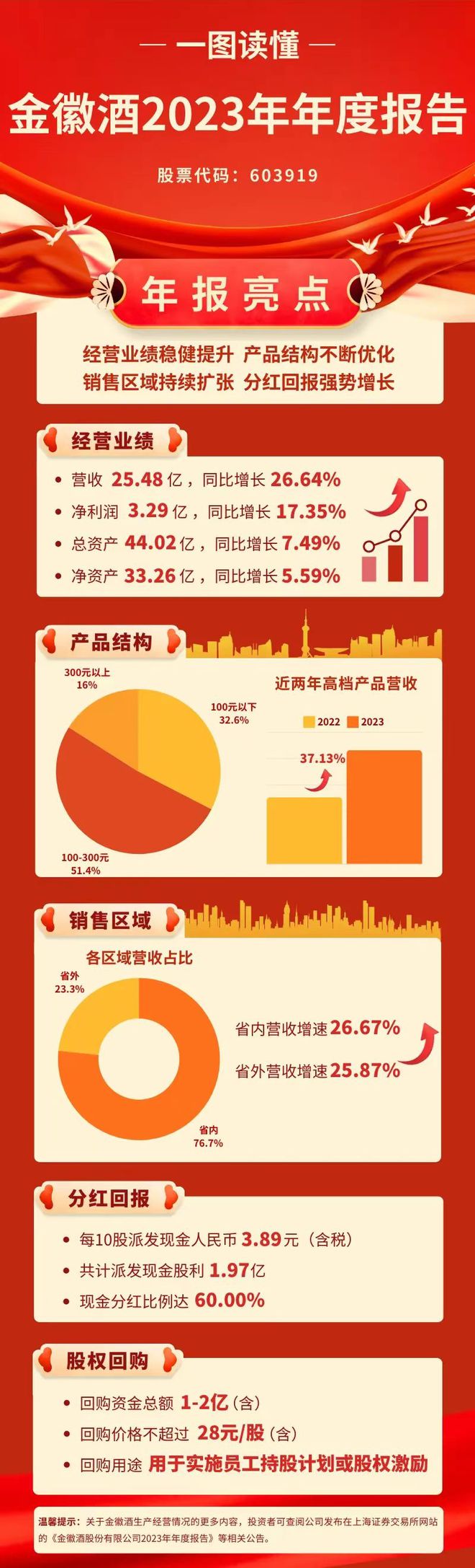 金徽酒表示,2024年是其二次创业征程中积蓄力量、转型突破的关键之年,公司将以转型促发展,以实干促增长,力争2024年实现营业收入30亿元、净利润4亿元。