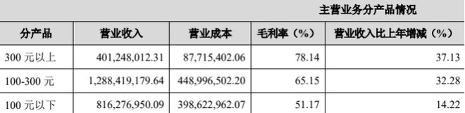财报显示,金徽酒加大了金徽28、金徽18、柔和金徽、能量金徽系列产品的销售,300元以上产品实现销售收入40,124.80万元,较上年同期增长37.13%,100-300元产品实现销售收入128,841.92万元,较上年同期增长32.28%。