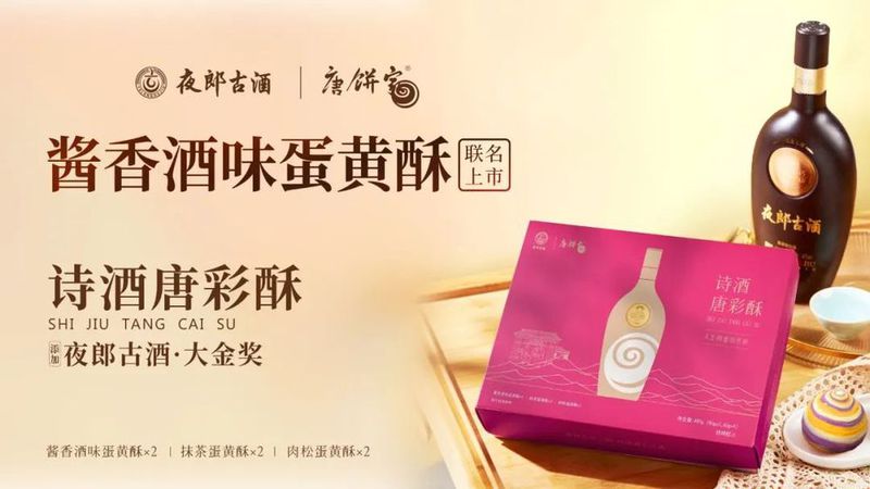 12月初,基于高品质追求的品牌基因,以及品牌匠心和深厚历史文化底蕴的高度契合,夜郎古酒与唐饼家联名推出了“诗酒唐彩酥”糕点礼盒,市场零售价为128元/盒,包含经典抹茶口味、肉松口味,及创新酱香酒味蛋黄酥各2枚。