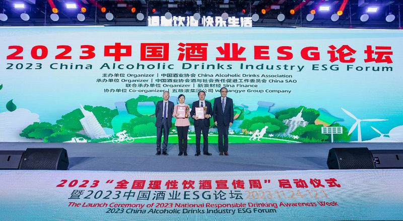 11月24日,2023“全国理性饮酒宣传周”启动仪式暨2023中国酒业ESG论坛在北京举行。作为“2023年酒与社会责任促进工作委员会”当值理事长单位,五粮液向全社会倡导健康、理性、适度饮酒,助推酒业持续、科学、健康、和谐发展。活动期间中国酒业ESG论坛发布2022年度“中国酒业ESG年度优秀案例”,五粮液凭借在履行社会责任和践行ESG理念等方面的先进经验与做法,获评“2022年度社会责任典范”案例。
