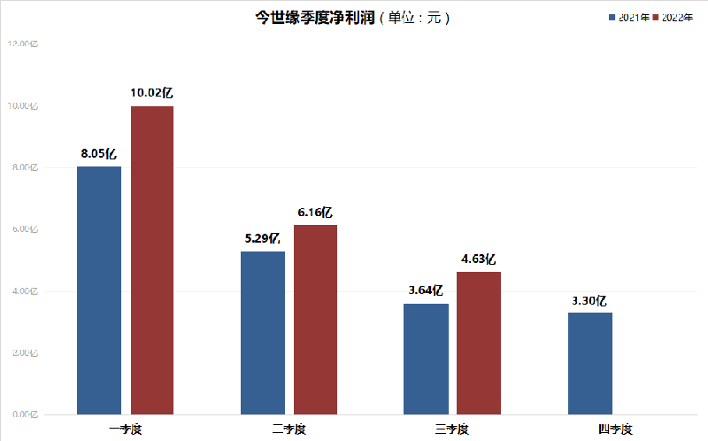 今世缘是近期走势较好,同时三季报业绩亮眼的个股。 公司2022年前三季度实现营业收入65.18亿元,同比增长22.18%; 实现净利润20.81亿元,同比增长22.53%。 利润增速略微快过营收增速,表明今世缘增收又增利。 分季度来看,第三季度实现净利润4.63亿元,同比增长27.2%,相比二季度环比下滑24.84%。
