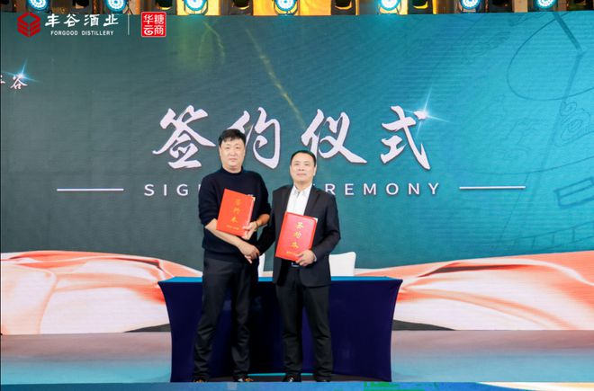 四川丰谷酒业销售公司山东分公司总经理董瑞勇和意向客户现场签订合作意向书。