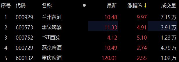 啤酒股走强 兰州黄河涨停