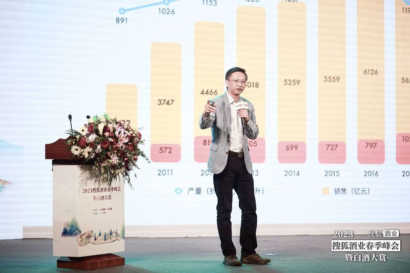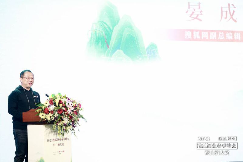 搜狐网副总编辑晏成为峰会致辞。他表示,“中国白酒的转型是一场广泛而长期的变革,需要凝聚各方智慧和力量,架起现实和未来之间的路径桥梁”。