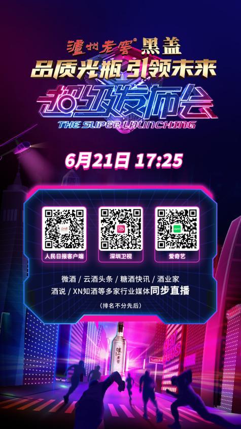 6月21日17:25分,请锁定人民日报客户端、深圳卫视、爱奇艺等多家媒体平台,扫描图片二维码,让我们相约泸州老窖黑盖超级发布会,共同揭晓答案!
