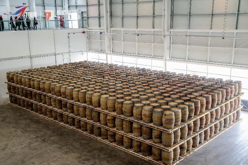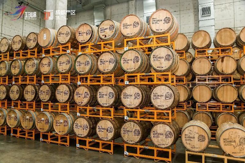 随后,我们来到储存橡木桶的厂房,和白酒的存储不同,威士忌更多是通过橡木桶的封藏,吸取一种名为“单宁酸”的物质,来赋予威士忌丰富的香气。由于国内规定威士忌陈酿时间不得低于2年,按照2021年10月首次灌装时间计算起始年份,这一批酒将预计在2023年10月之后与大家相见。