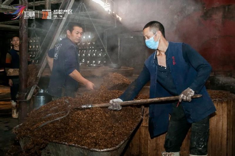 步入二楼的窖池车间,一股浓郁的酒糟香气扑鼻而来,才明白这份美誉的名副其实。文君酒庄沿袭古“寇氏烧坊”的蒸馏入窖法,将这份古法酿制的坚守,融入到层次丰富,自然协调的酒体里。