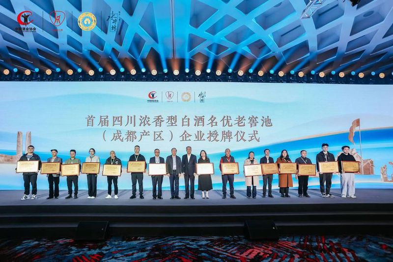 此外,现场举行了首届四川浓香型白酒名优老窖池(成都产区)授牌仪式,为产区36家酒企颁发了证书(其中邛崃20家,占全川入选酒企的13.7%),并授予水井坊“老窖池保护领军企业”荣誉称号。