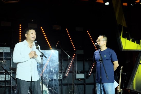 贵州钓鱼台酒业有限公司总经理、贵州省白酒企业商会会长、白酒行业著名企业家丁远怀(左)国潮音乐节的创办及主理人、著名音乐人卢中强(右)